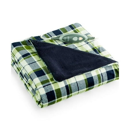 heated throw microplush sunbeam blanket allister plaid navy electric.